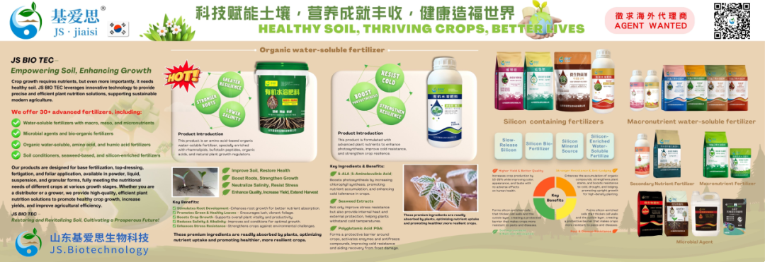 基爱思为了满足复杂的农业生产要求,提供机水溶肥料、大量元素水溶肥料、微量元素水溶肥料、中量元素肥料、含硅水溶肥料、微生物菌剂等产品,可以满足不同作物和土壤的需求。