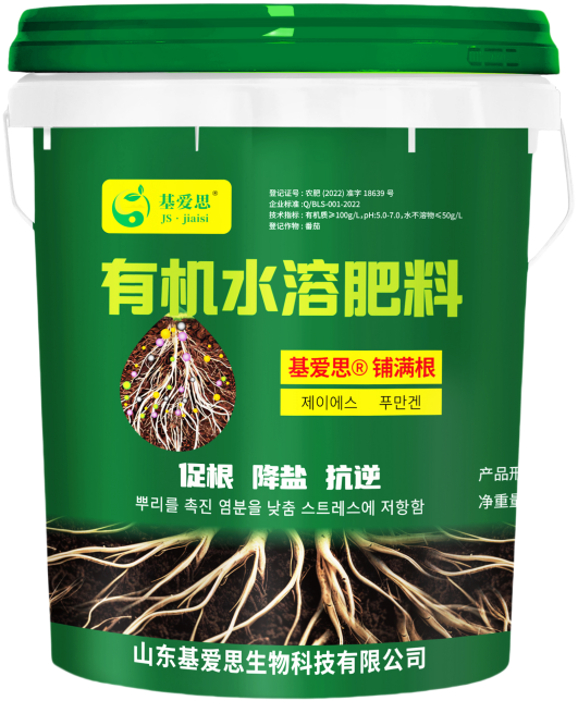 基爱思®铺满根是⼀款氨基酸有机⽔溶肥料,特别添加⿏李糖脂、蟾酥肽、有机酸和植物内源生长素等核⼼成分。具有帮助作物生根、绿叶、促进作物地上部生长,提高作物抗逆性等产品特点。